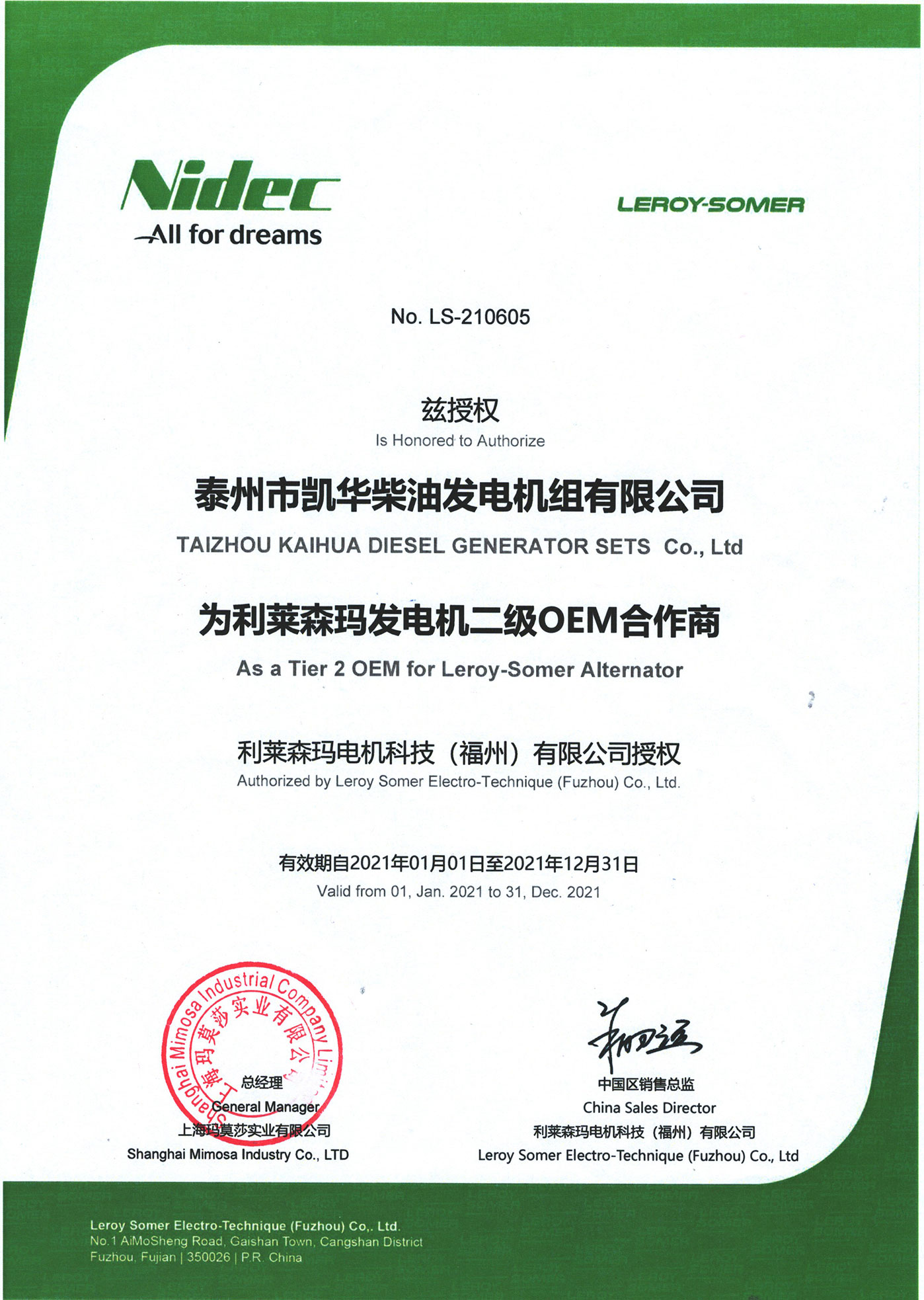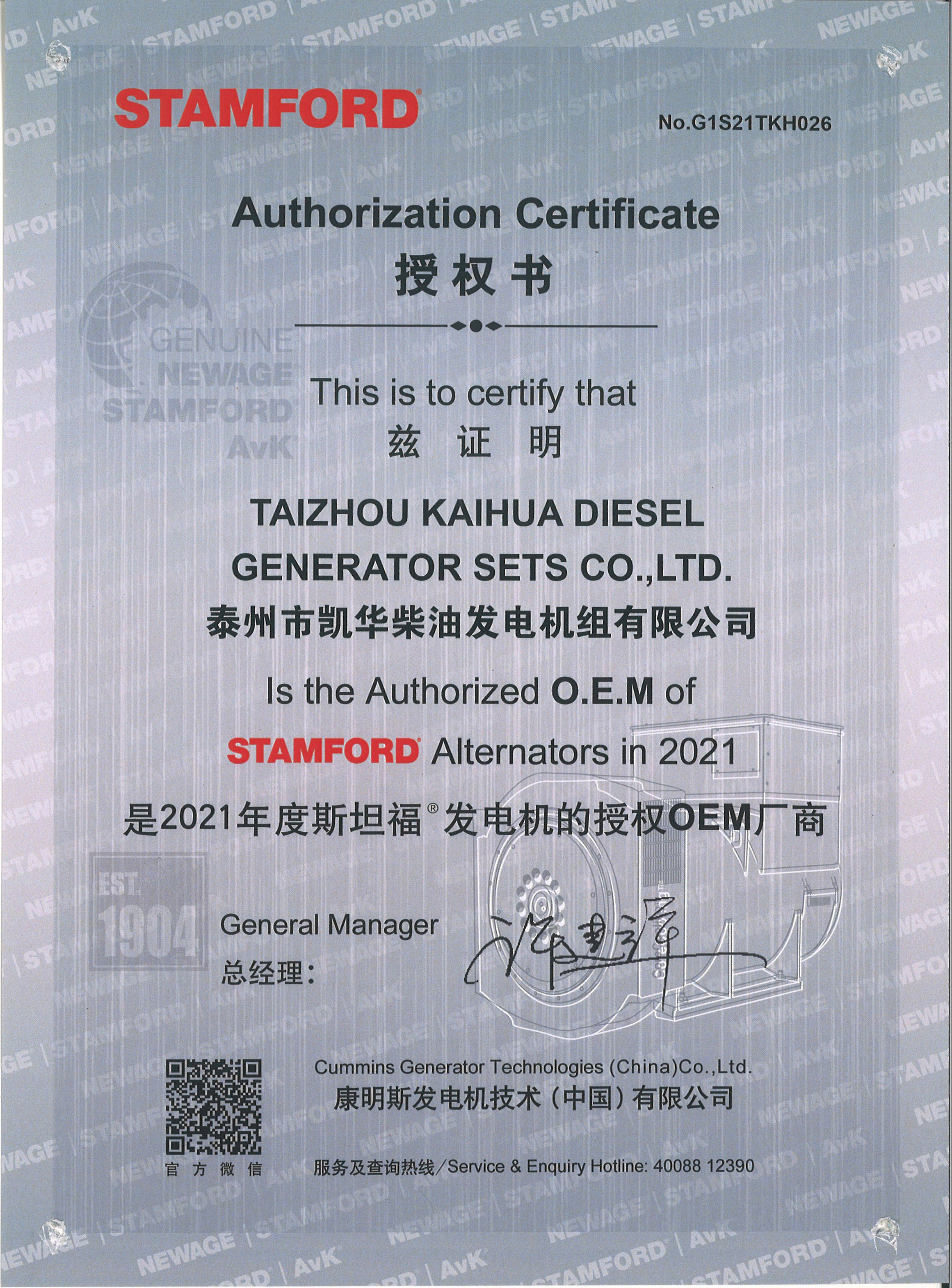 泰州市凱華柴油發(fā)電機組有限公司創(chuàng)建于2003年,是一家集柴油發(fā)電機組的研發(fā)、生產(chǎn)、銷售為一體的高新技術(shù)民營企業(yè),公司目前注冊資本金11800萬元人民幣,生產(chǎn)基地占地六十畝,現(xiàn)有各類高素質(zhì)員工一百多名,專業(yè)技術(shù)人員達(dá)46人,其中高級技術(shù)人員16人,年銷售額近6億元。公司主營產(chǎn)品:3~3000KW陸用柴油發(fā)電機組,15~600KW移動拖車電站,12~1000KW船用應(yīng)急柴油發(fā)電機組,各種靜音型、中高壓、多機并聯(lián)、燃?xì)獾忍胤N機組以及進口系列柴油發(fā)電機組,可滿足不同客戶的不同電力需求,還可滿足用戶不同電壓、不同頻率的要求。