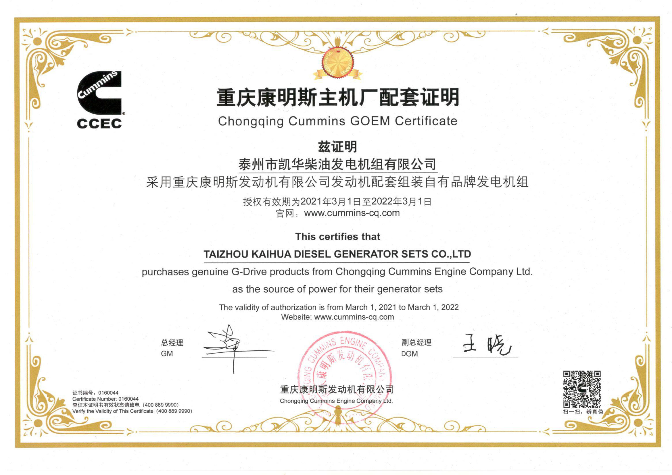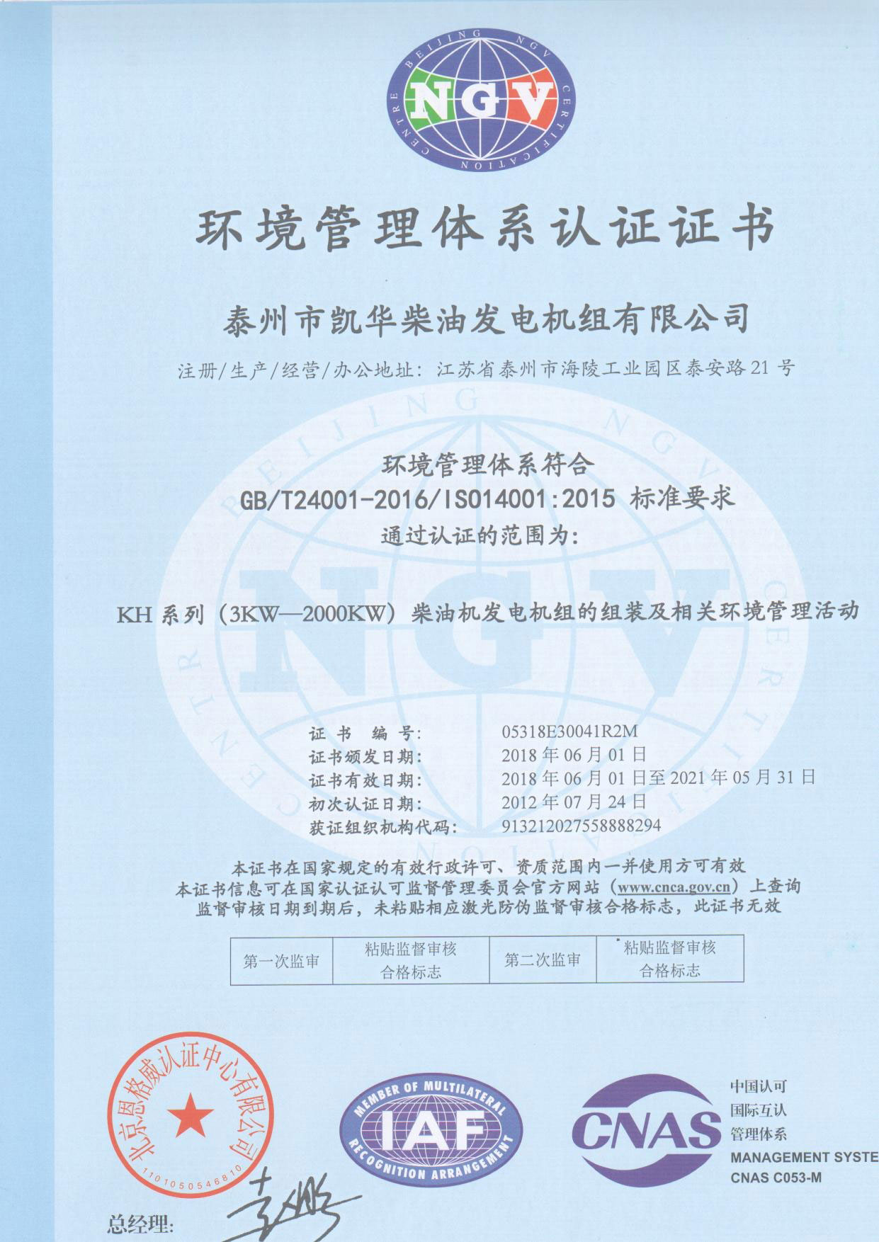 發(fā)電機組廠家凱華公司已先后通過ISO9001質(zhì)量認(rèn)證、泰爾認(rèn)證、ISO14001-2001環(huán)境管理體系認(rèn)證、GB/T28001-2001職業(yè)健康安全管理體系認(rèn)證,歐盟CE認(rèn)證、SGS認(rèn)證等。